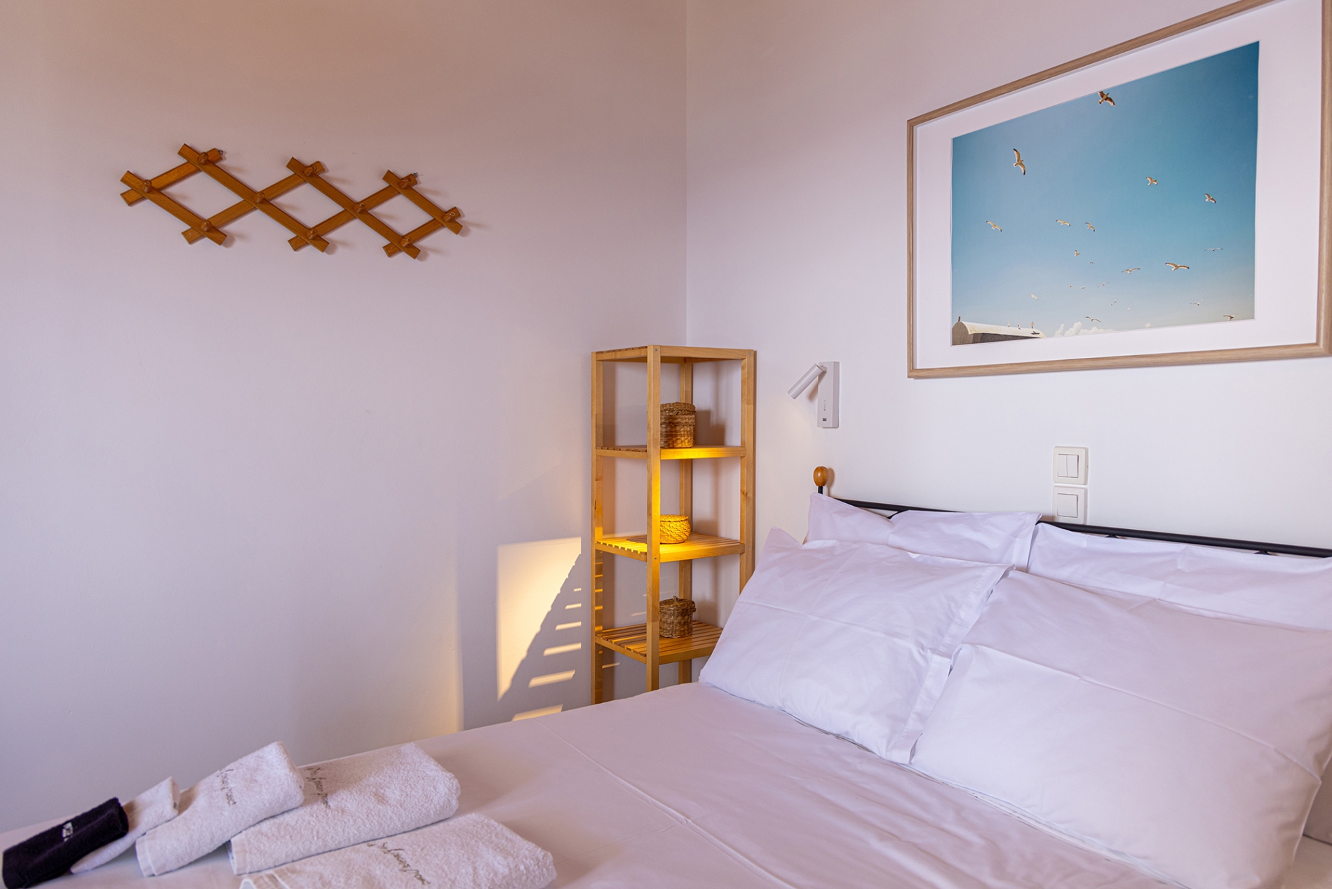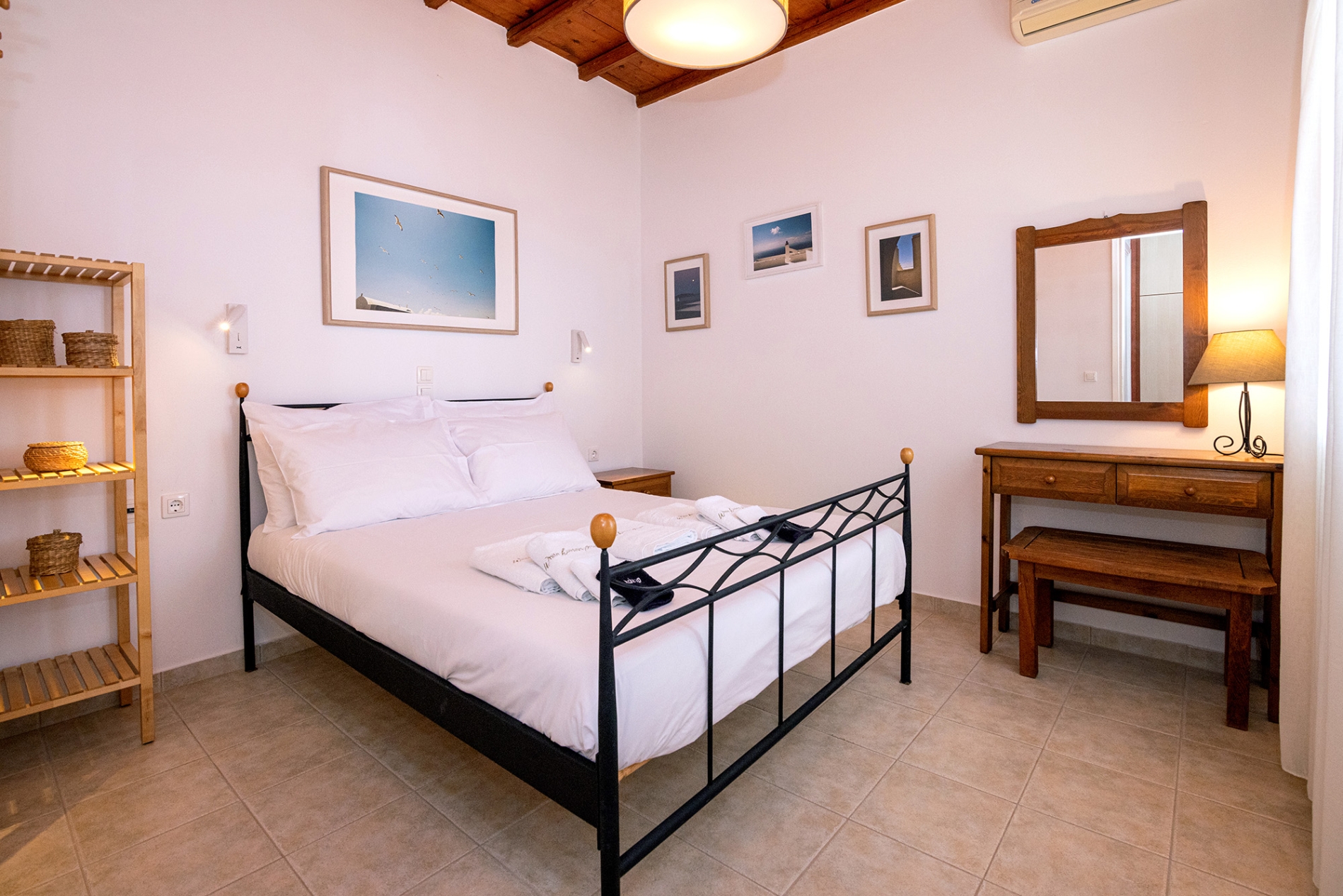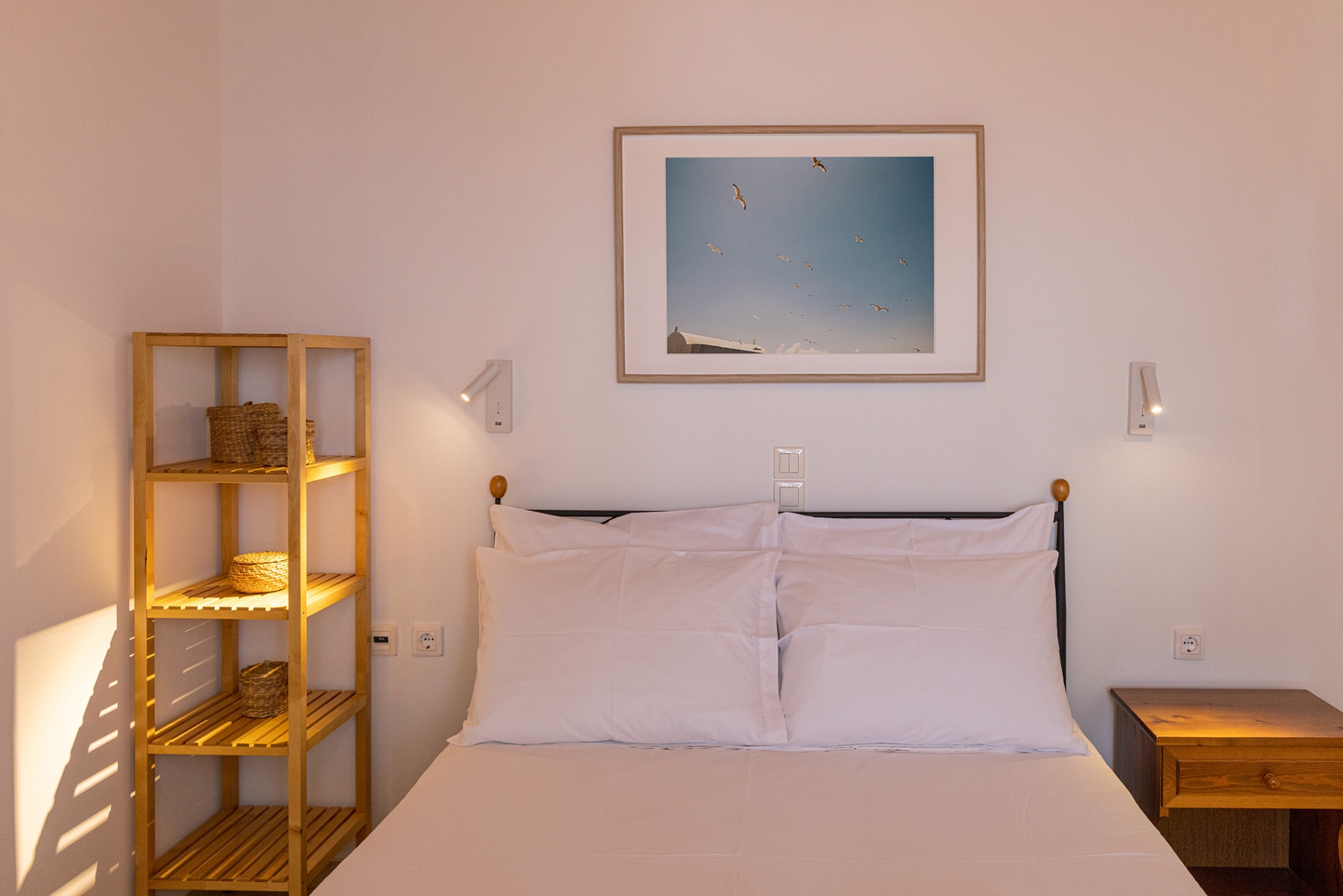 Tucked in the scenic enclave of Agios Sostis, Cozy House reflects the timeless beauty of Tinos with whitewashed walls, natural stone accents, and traditional wooden details that honor the island’s heritage. Its prime location near the sea allows you to wake up to the sound of the waves and enjoy a stunning Aegean panorama from sunrise to sunset. A charming stone-paved veranda invites slow mornings with coffee, relaxed afternoons, and quiet evenings with a glass of wine overlooking the sea while the sea breeze gently unfolds around you. Simple lines and minimal décor foster a calming environment that encourages focus, creativity, and relaxation.