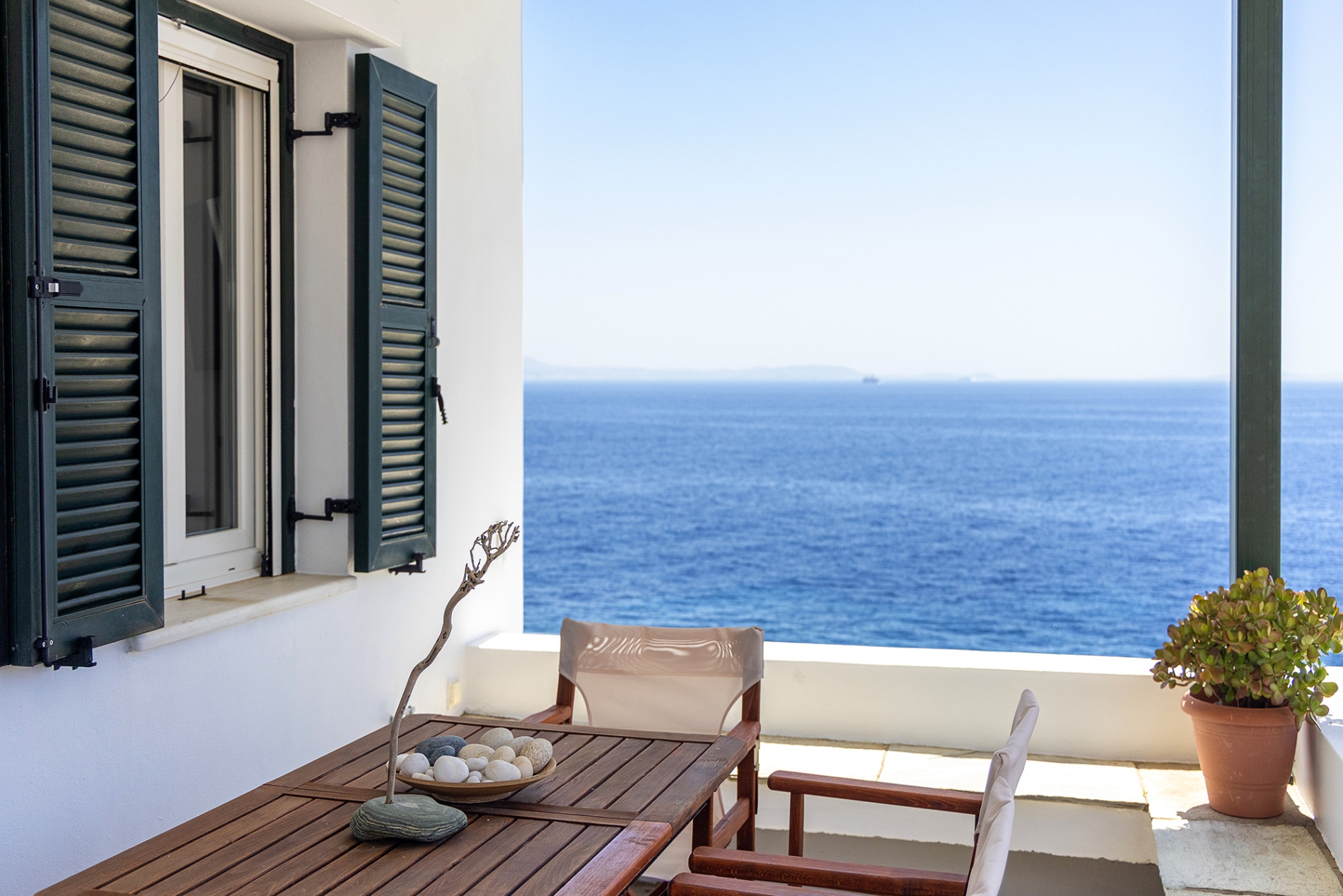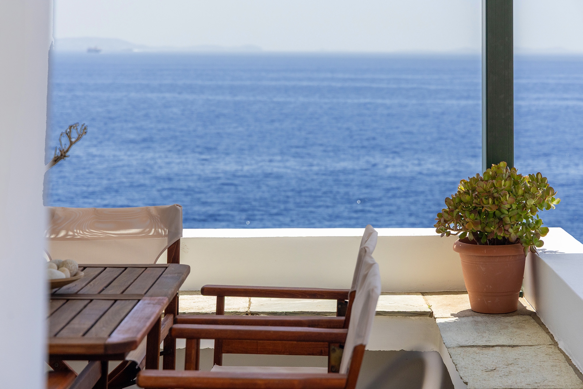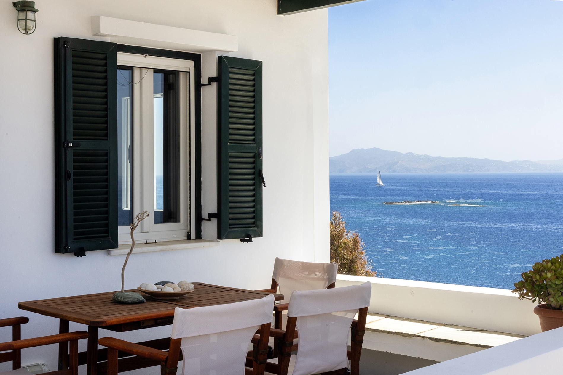 A charming Cycladic retreat just steps from the water with breathtaking views over the bay and Aegean horizon.