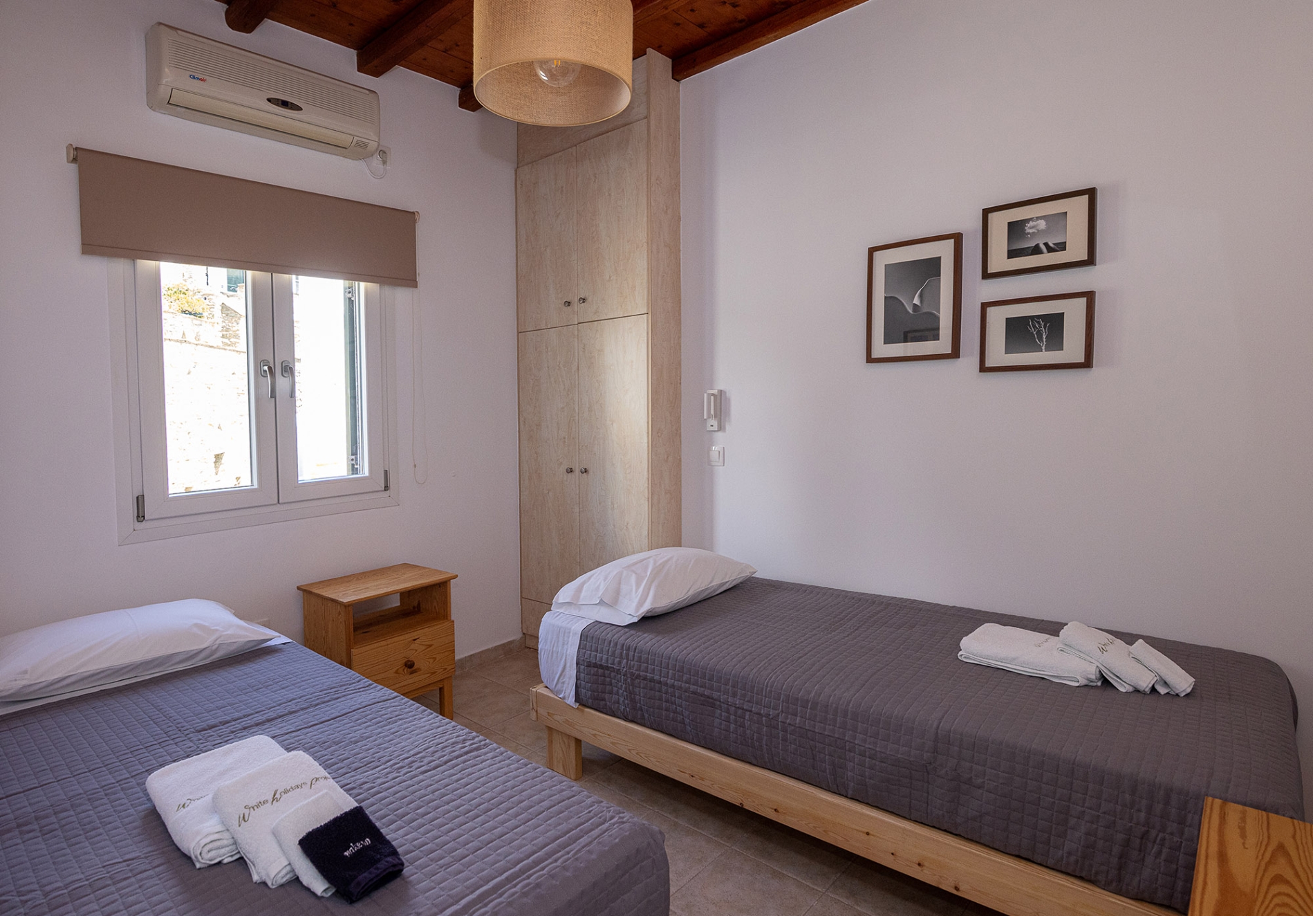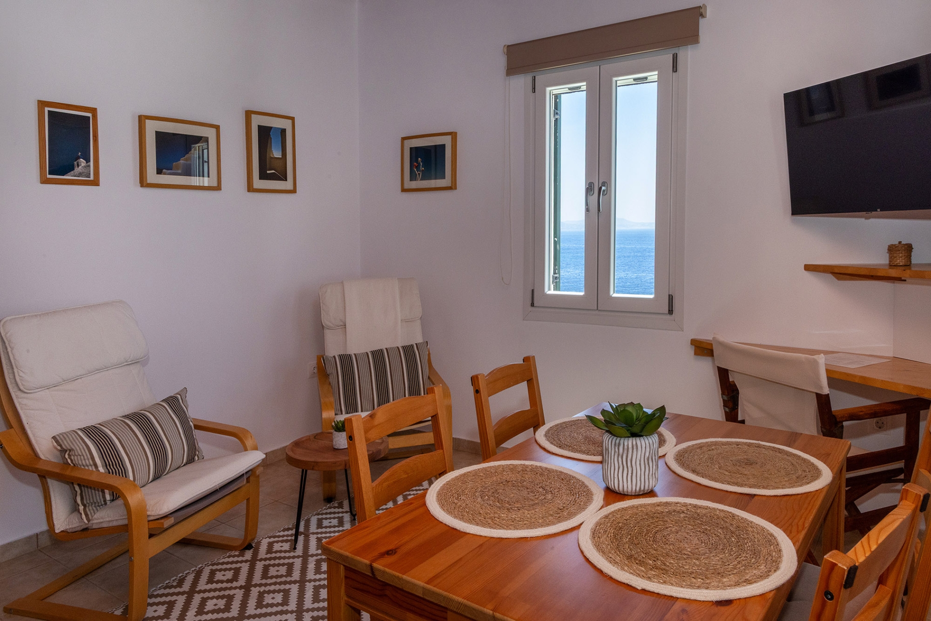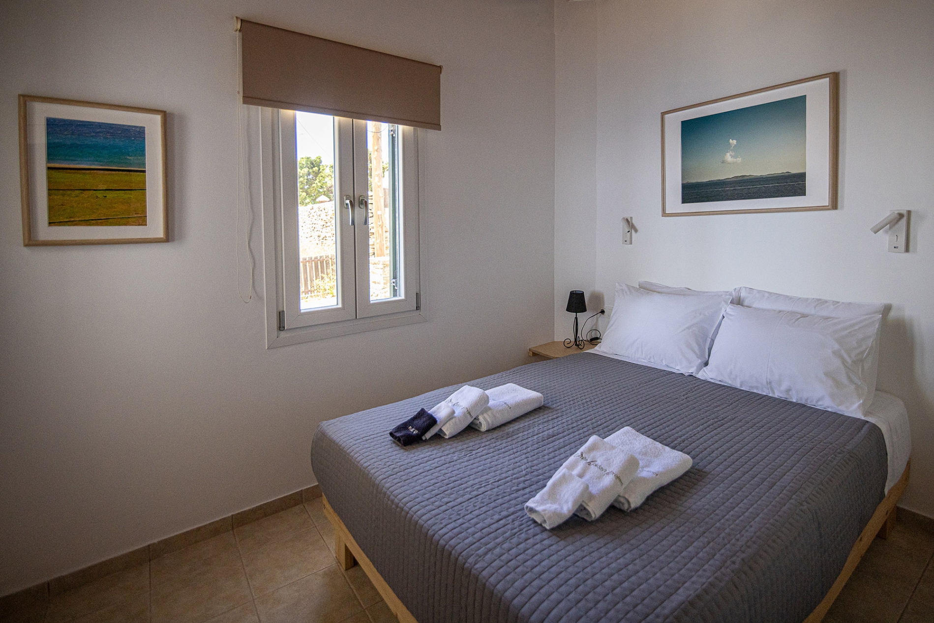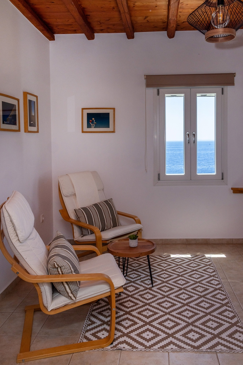 At 55 sq.m. and accommodating up to 4 guests with 2 bedrooms offering 1 double bed and 2 single beds, this apartment provides a welcoming layout ideal for couples, friends, or small families. Sunlight fills the interior by day, while the gentle evening breeze invites relaxation and rest and creates a calm, comfortable atmosphere ideal for reading, remote work, or relaxation. Thoughtfully appointed with modern amenities and tasteful décor, Sunset House is a tranquil hideaway that beautifully captures the spirit of traditional island living by the sea.