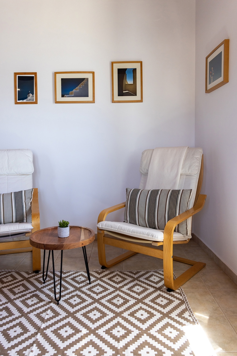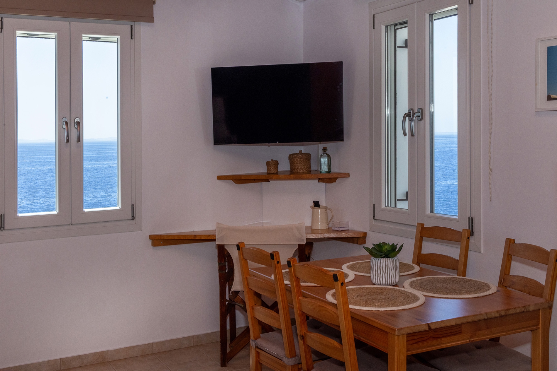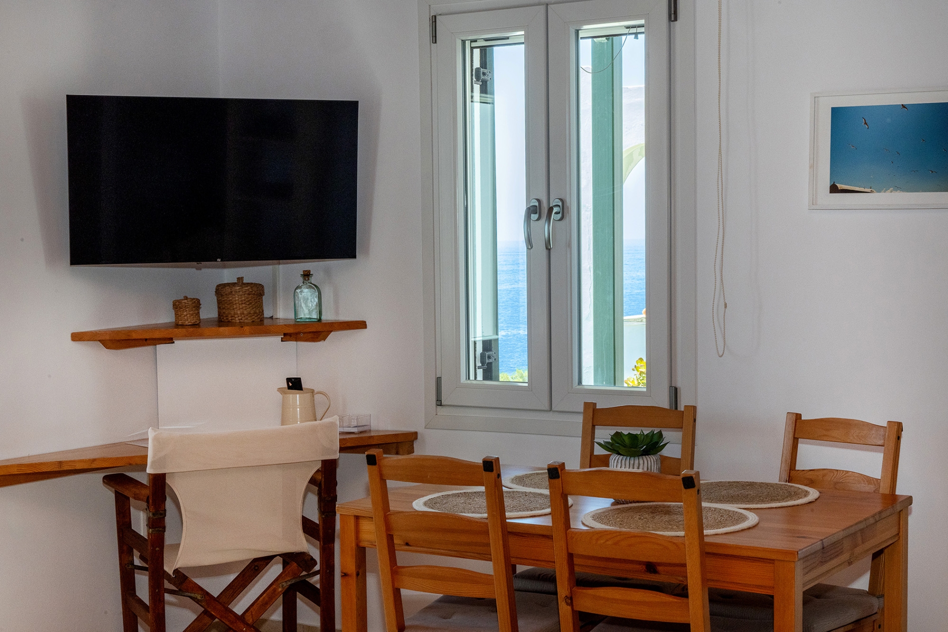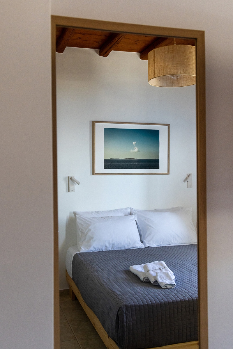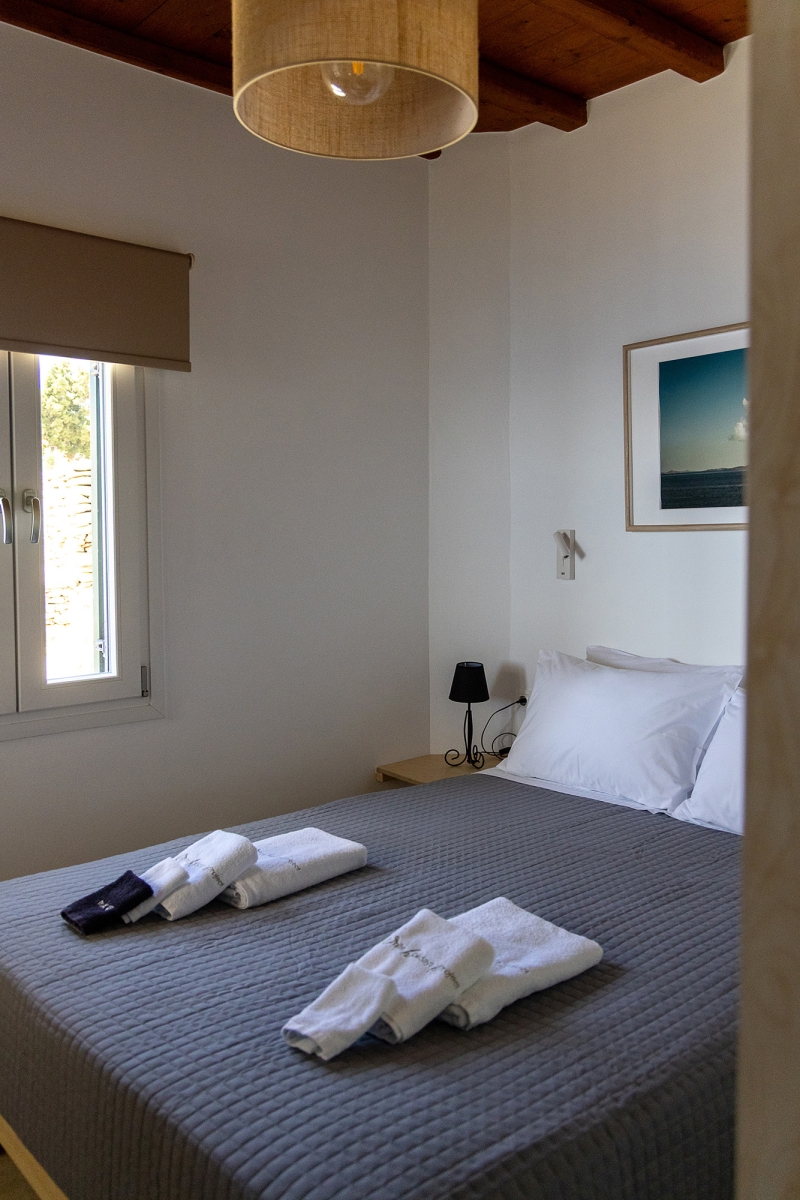 At 55 sq.m. and accommodating up to 4 guests with 2 bedrooms offering 1 double bed and 2 single beds, this apartment provides a welcoming layout ideal for couples, friends, or small families. Sunlight fills the interior by day, while the gentle evening breeze invites relaxation and rest and creates a calm, comfortable atmosphere ideal for reading, remote work, or relaxation. Thoughtfully appointed with modern amenities and tasteful décor, Sunset House is a tranquil hideaway that beautifully captures the spirit of traditional island living by the sea.
