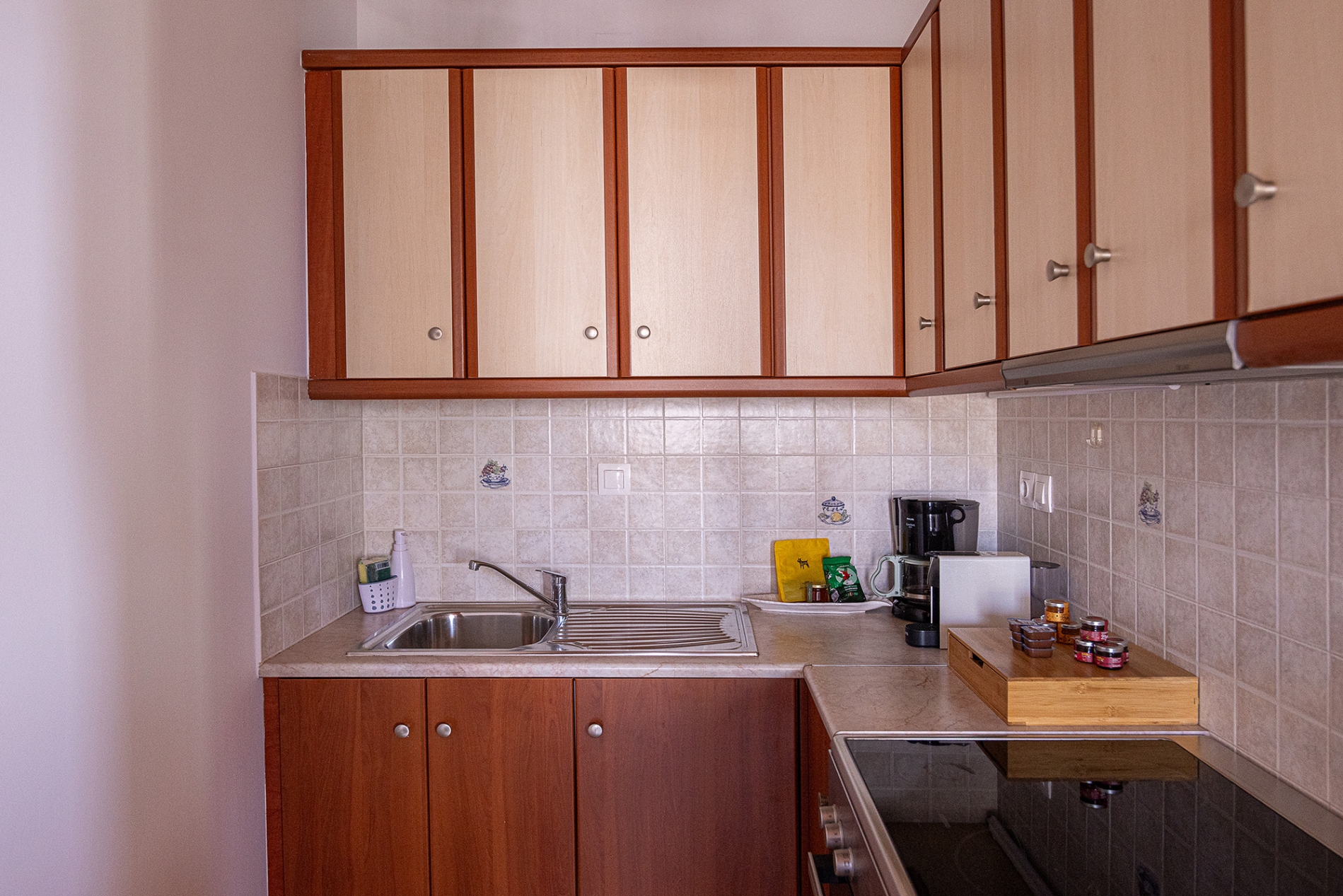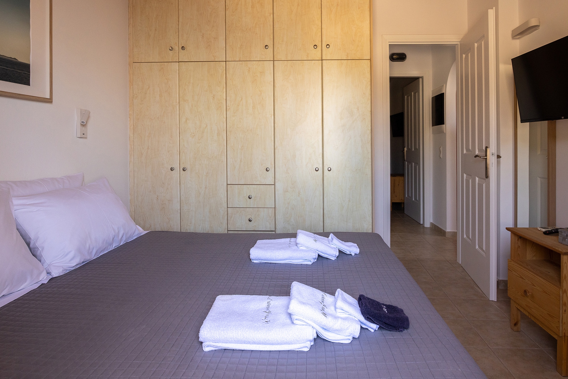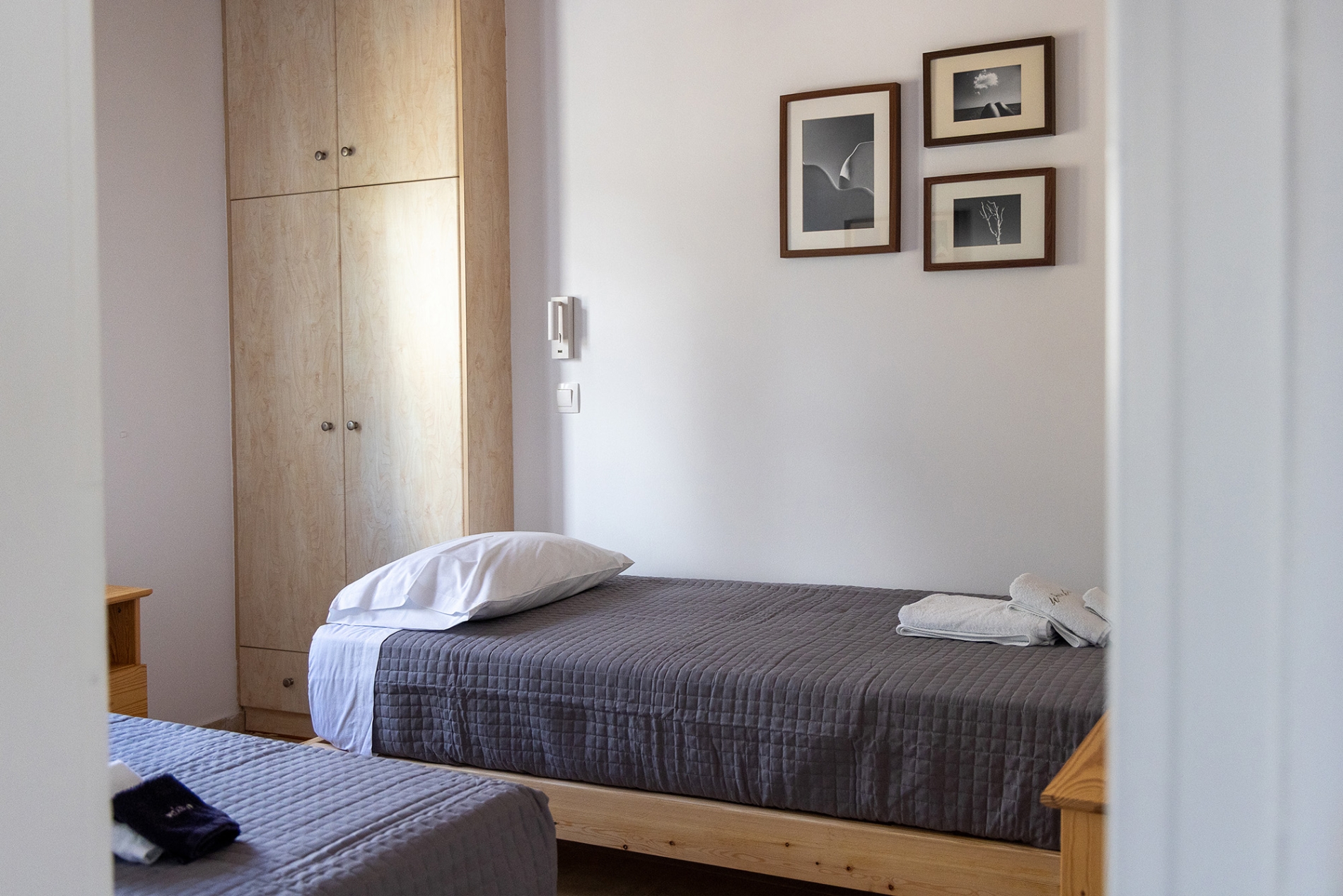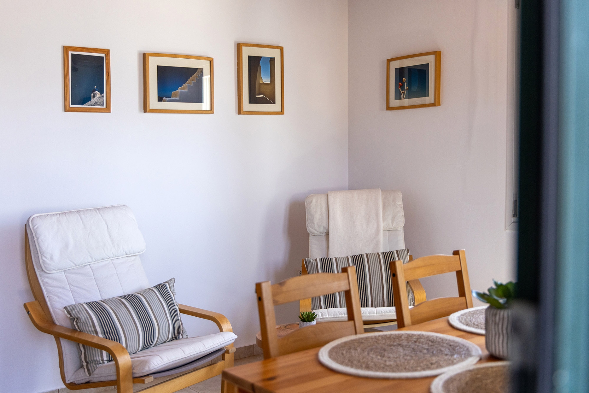 At 55 sq.m. and accommodating up to 4 guests with 2 bedrooms offering 1 double bed and 2 single beds, this apartment provides a welcoming layout ideal for couples, friends, or small families. Sunlight fills the interior by day, while the gentle evening breeze invites relaxation and rest and creates a calm, comfortable atmosphere ideal for reading, remote work, or relaxation. Thoughtfully appointed with modern amenities and tasteful décor, Sunset House is a tranquil hideaway that beautifully captures the spirit of traditional island living by the sea.