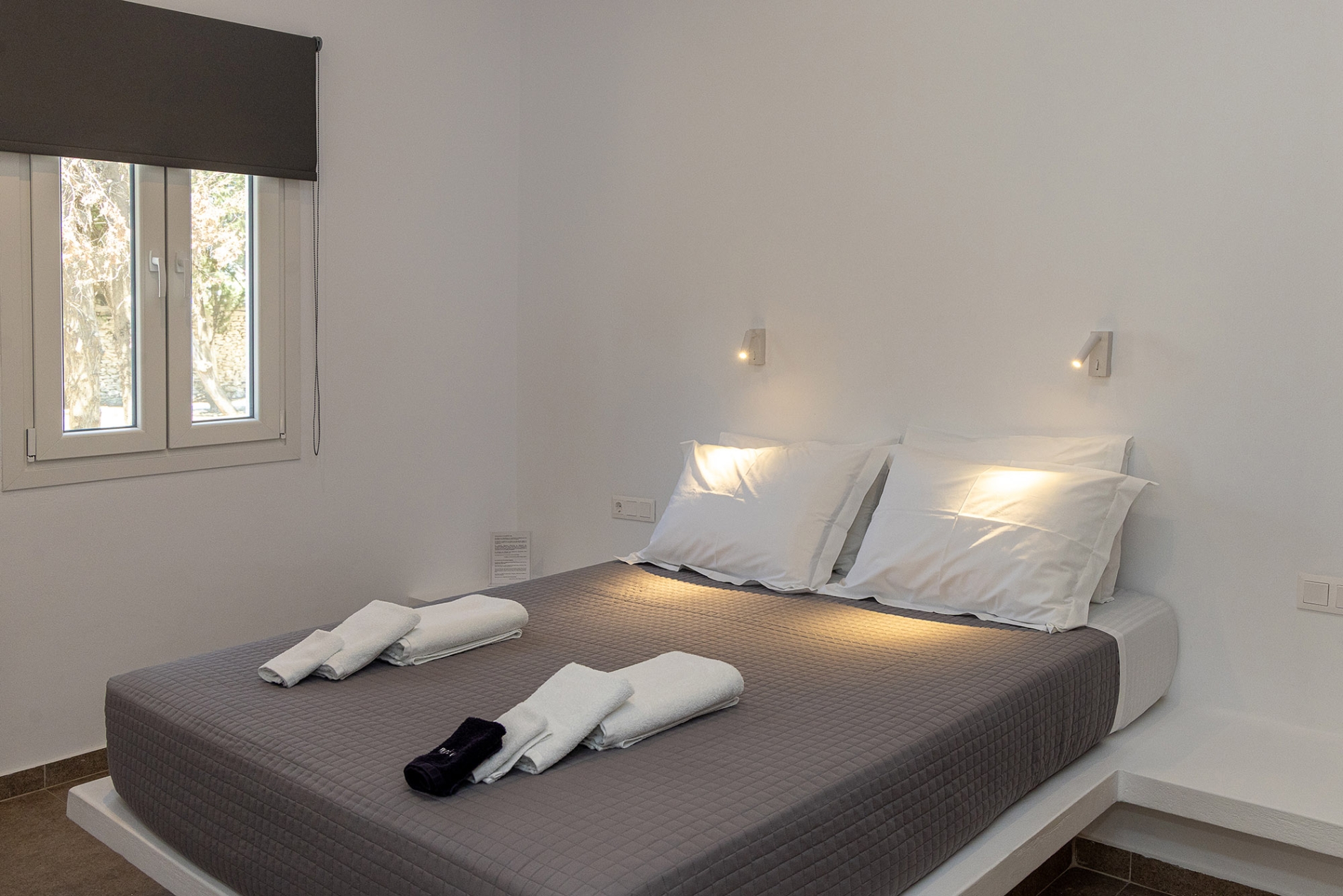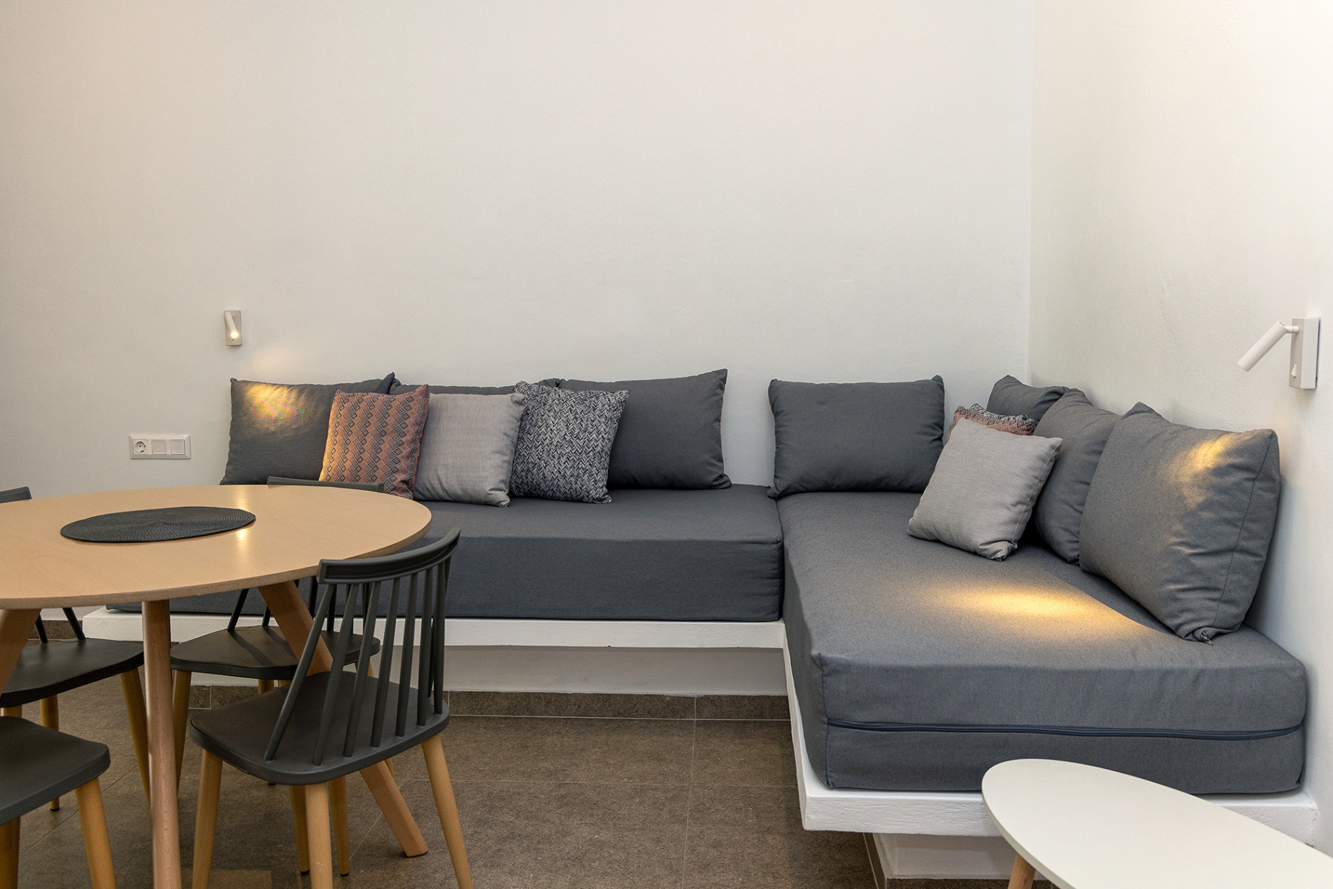 Measuring 35 m² and accommodating up to 4 guests with 1 double bed and 2 sofa beds, Panormos Deluxe Apartment is ideal for families or small groups seeking an authentic island getaway. Inside, soft color palettes, natural textures, and carefully chosen furnishings create a cozy yet elegant interior, while the garden oasis extends the living space outdoors, offering a tranquil spot to unwind and enjoy the gentle Aegean breeze. Combining traditional Cycladic design with peaceful surroundings, Panormos Deluxe Apartment provides a truly restorative Tinos experience.