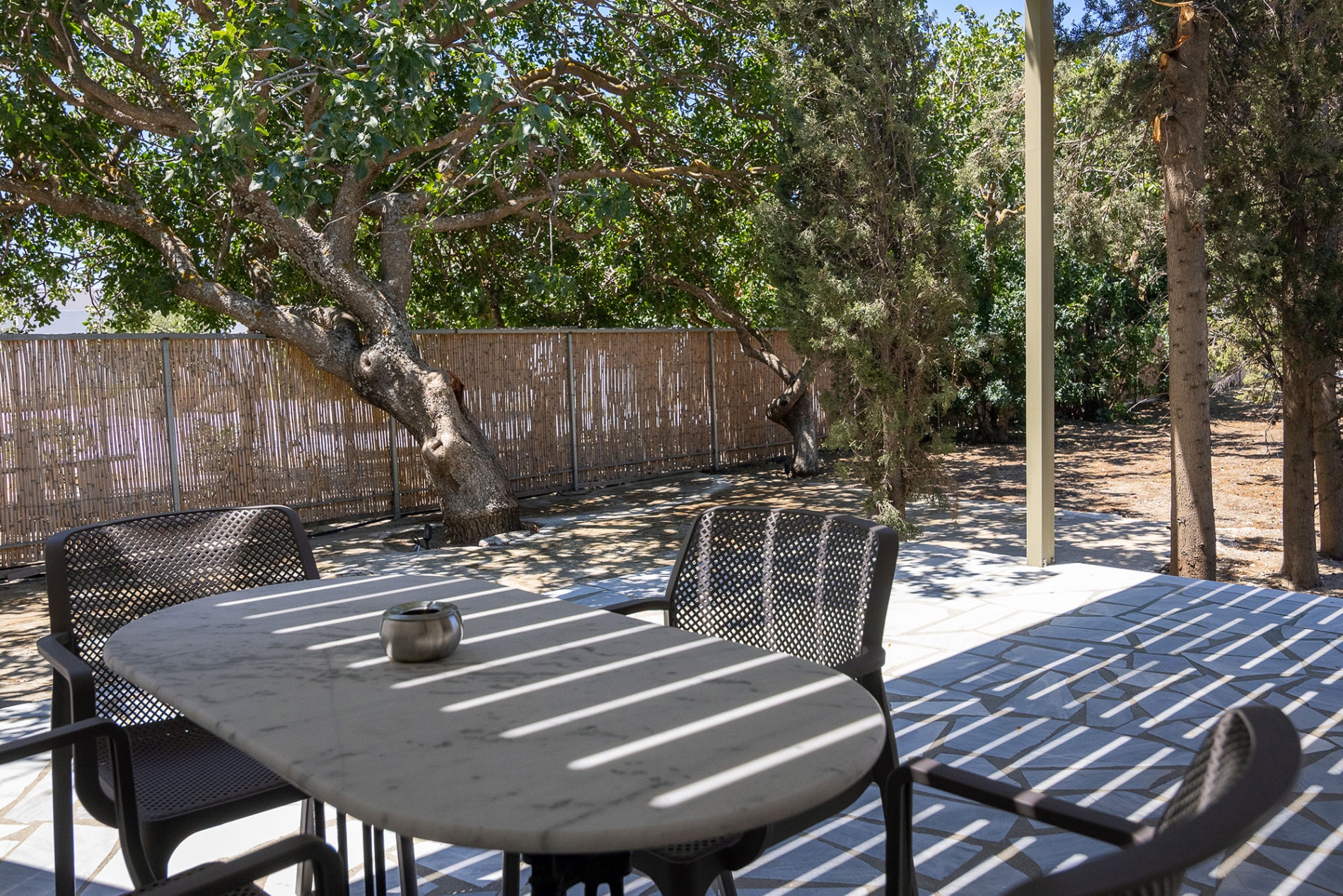 Named after the picturesque village of Panormos, often described as the “seaport of Pyrgos,” Panormos Deluxe Apartment draws inspiration from the charm and maritime heritage of the area. The apartment reflects timeless Cycladic style with whitewashed walls, natural stone elements, and traditional wooden accents, capturing the essence of Tinos’ cultural heritage. Its garden oasis surrounds the apartment with lush greenery, flowering plants, and shaded corners, providing a peaceful environment for morning coffee, reading, or relaxing evenings immersed in nature.