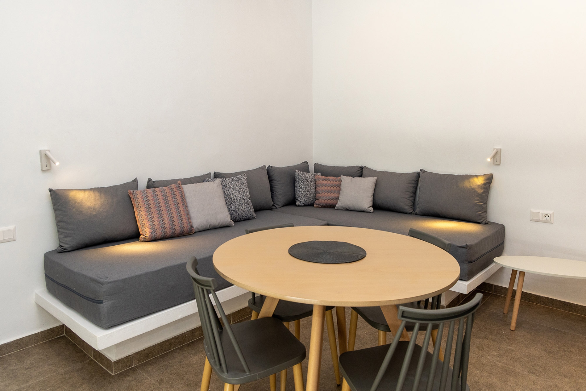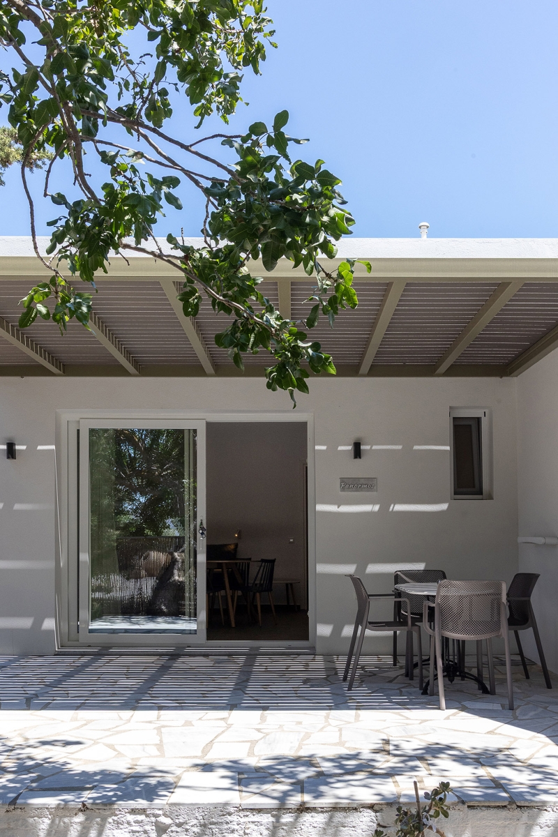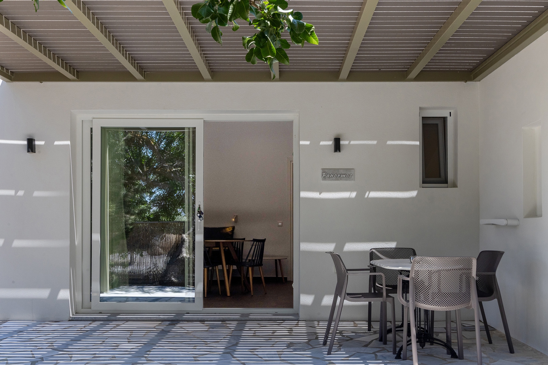 Panormos Deluxe Apartment combines classic island architecture with contemporary amenities, creating a warm and inviting atmosphere.