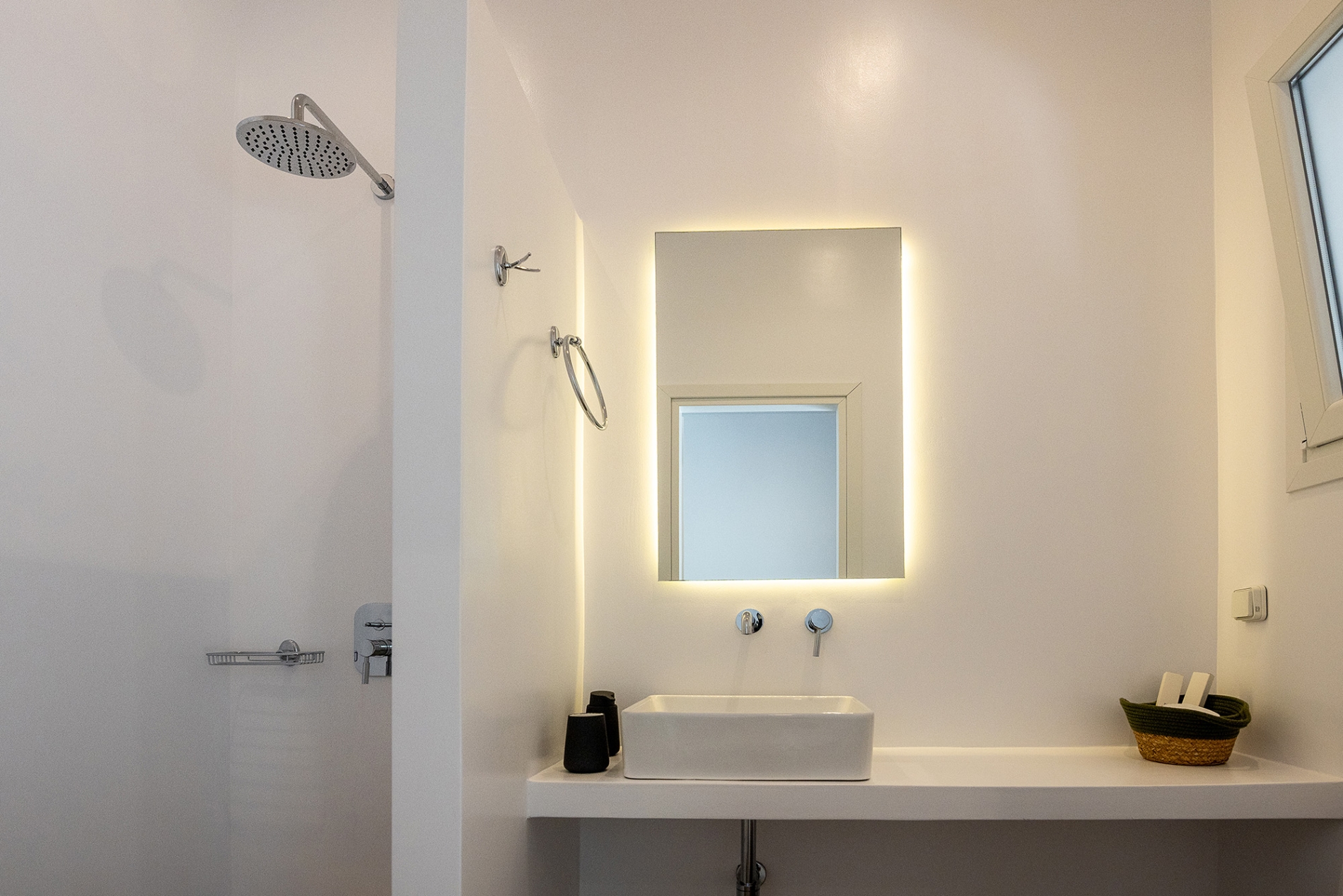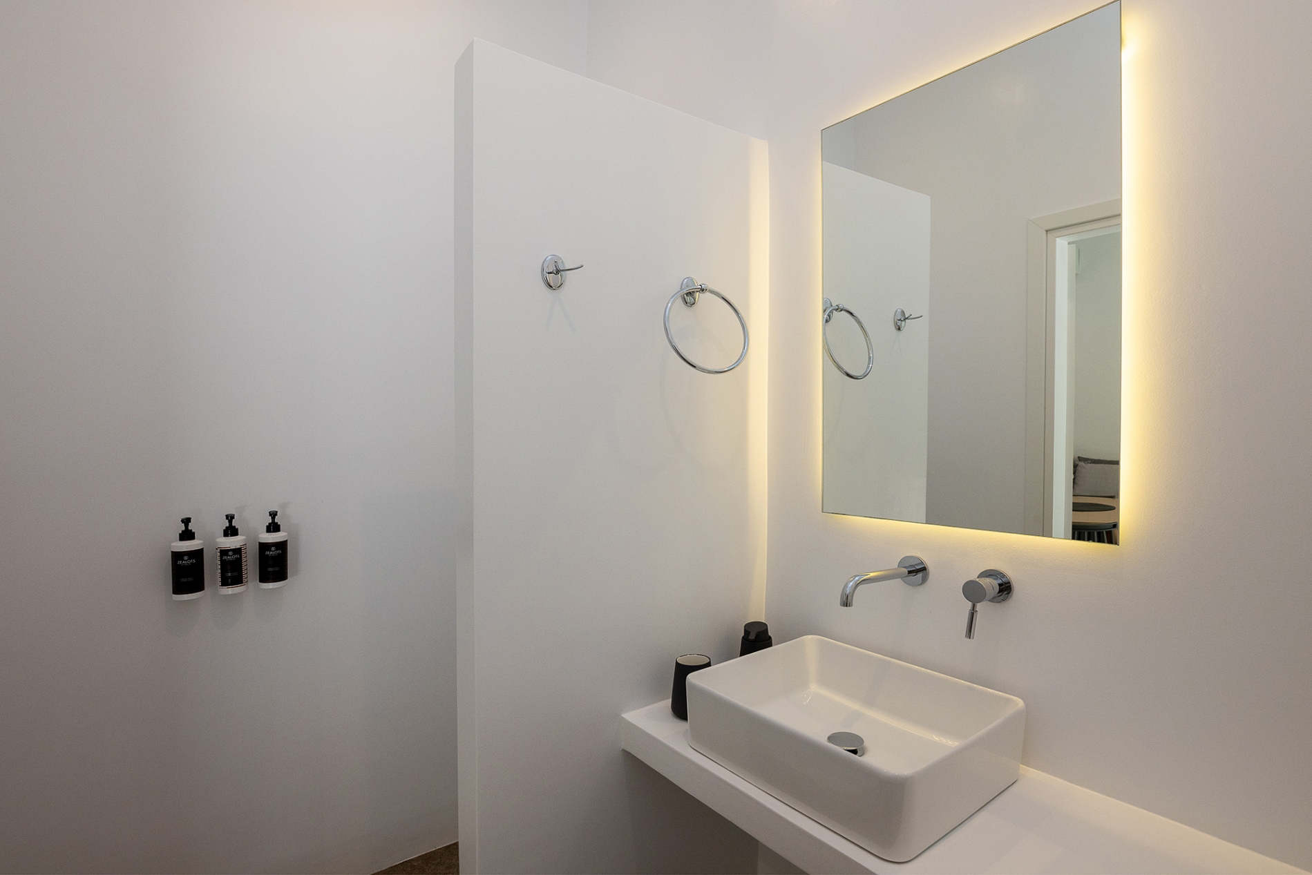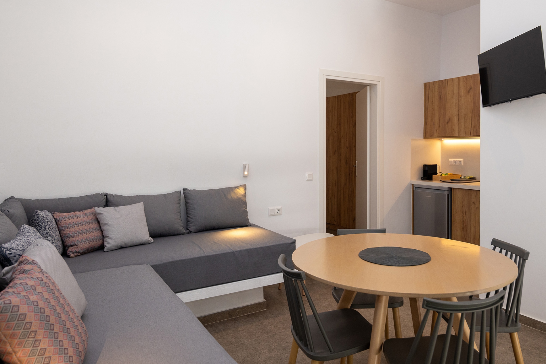 Panormos Deluxe Apartment combines classic island architecture with contemporary amenities, creating a warm and inviting atmosphere.
