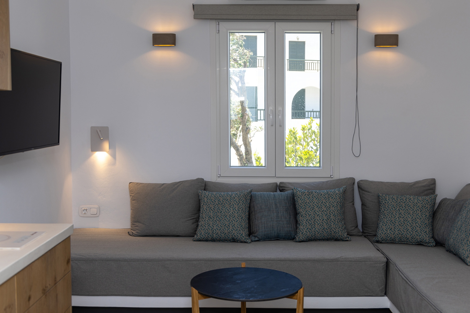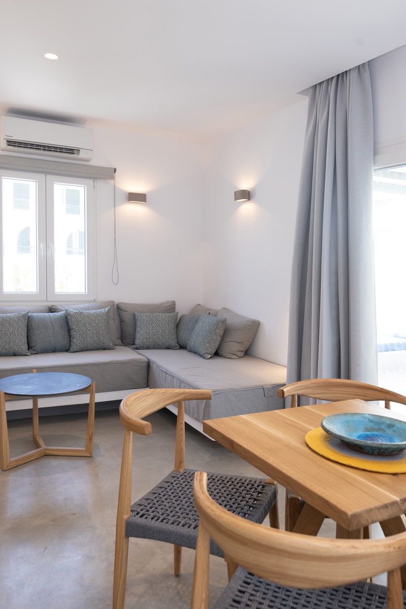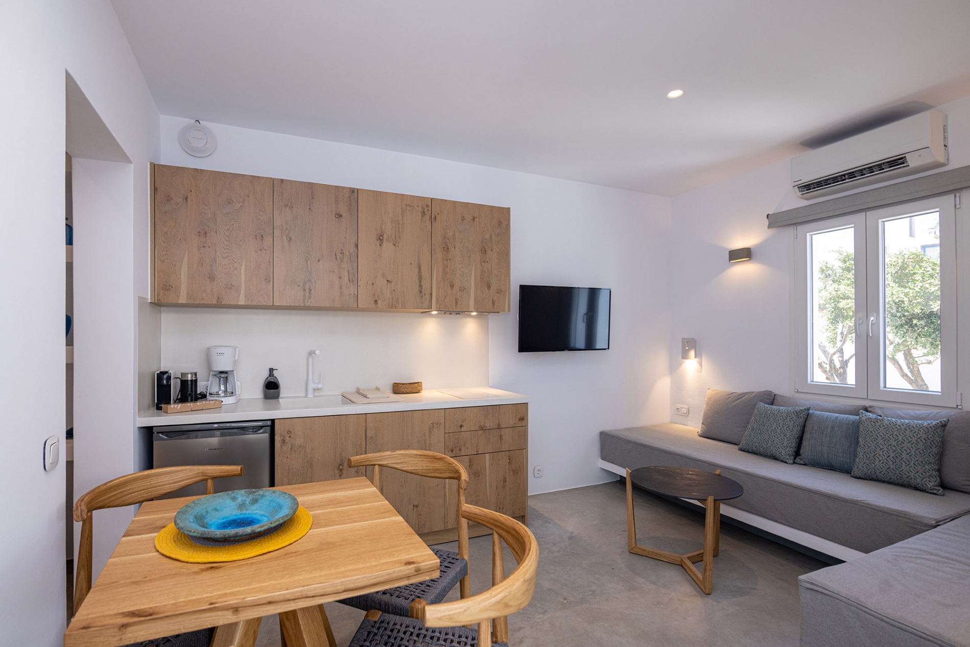 Agapi Deluxe Apartment harmoniously combines authentic island character with modern design, creating a stay that feels both distinctive and welcoming.